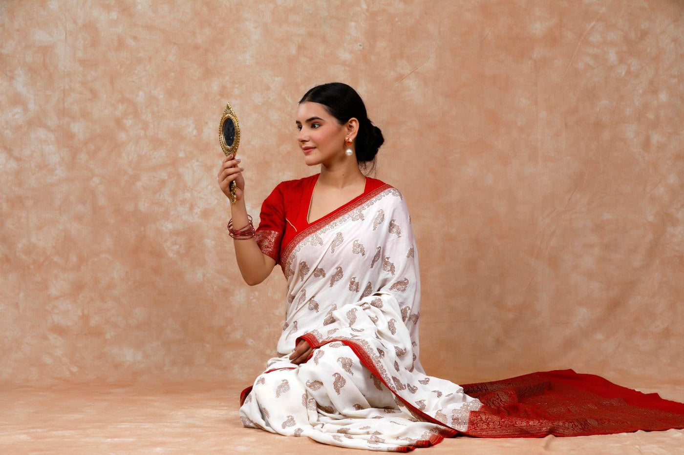 The complexity behind the workmanship involved in making a banarasi georgette sarees in Varanasi is second to none. Originally made from silk, georgette is made with highly twisted yarns. Its characteristic crinkly surface is created by alternating silk yarns in both the wrap and the weft. Banarasi khaddi georgette sarees are among the finest sarees in India and are known for its rich use of zari and are available in all hues.