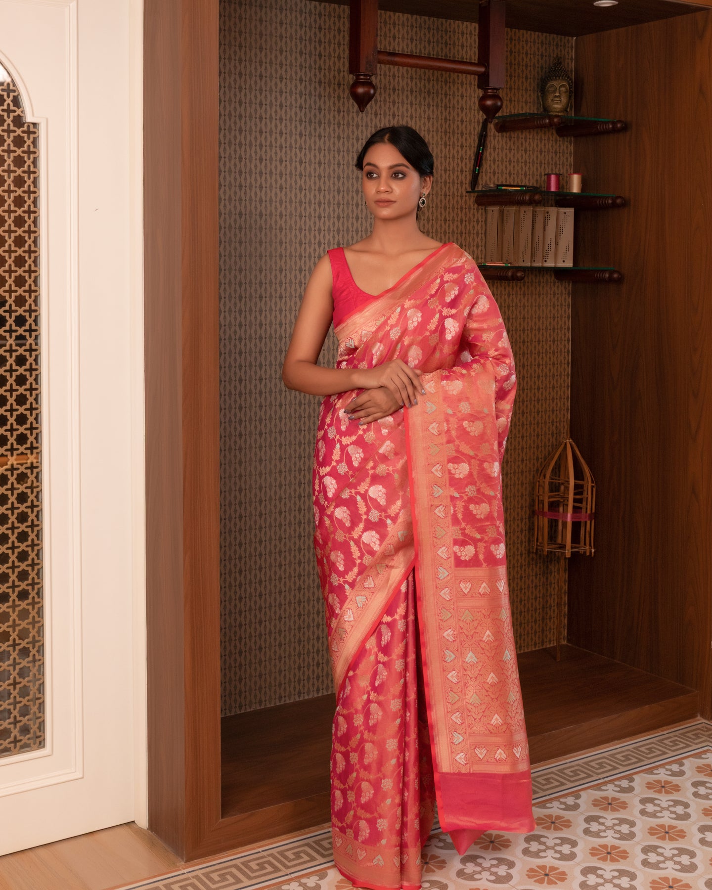 - Avoid spraying perfume on the saree to prevent stains.