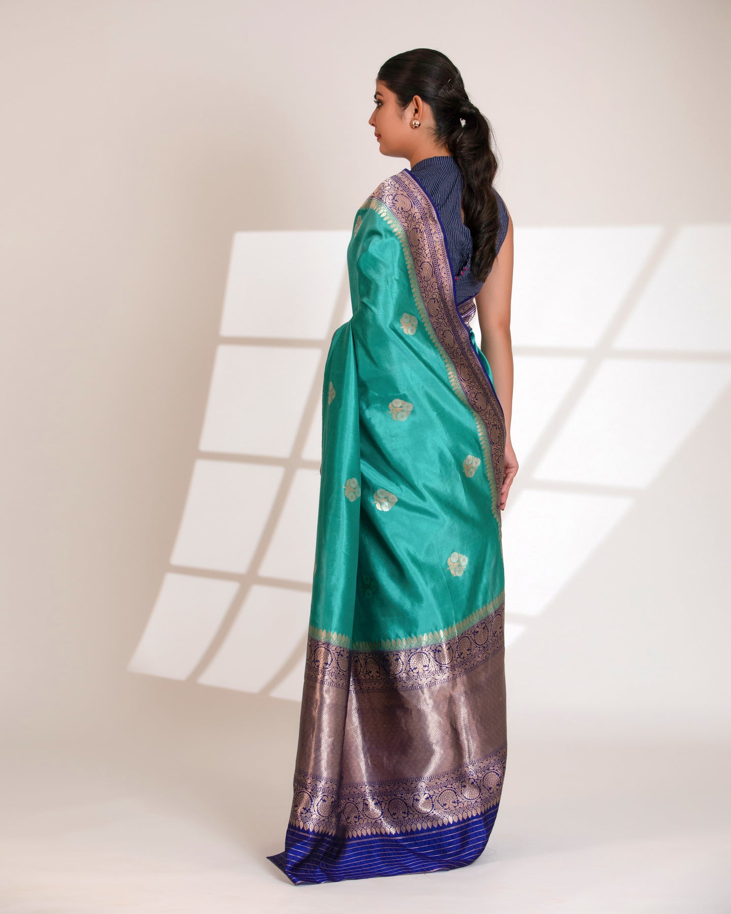PINE GREEN KADHWA KATAN SILK BANARASI HANDLOOM SAREE