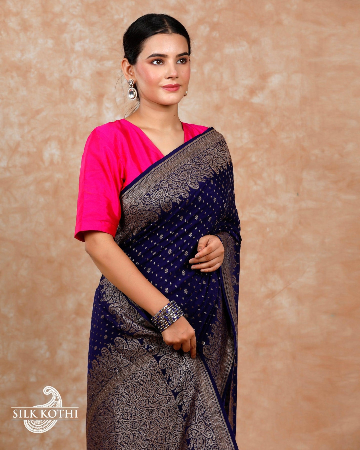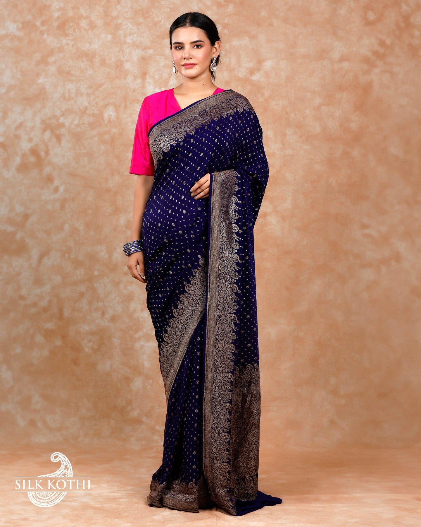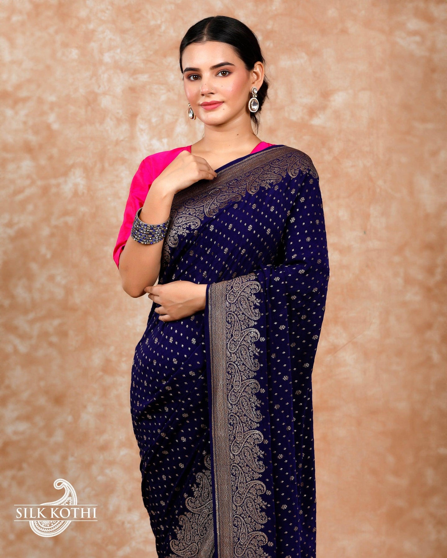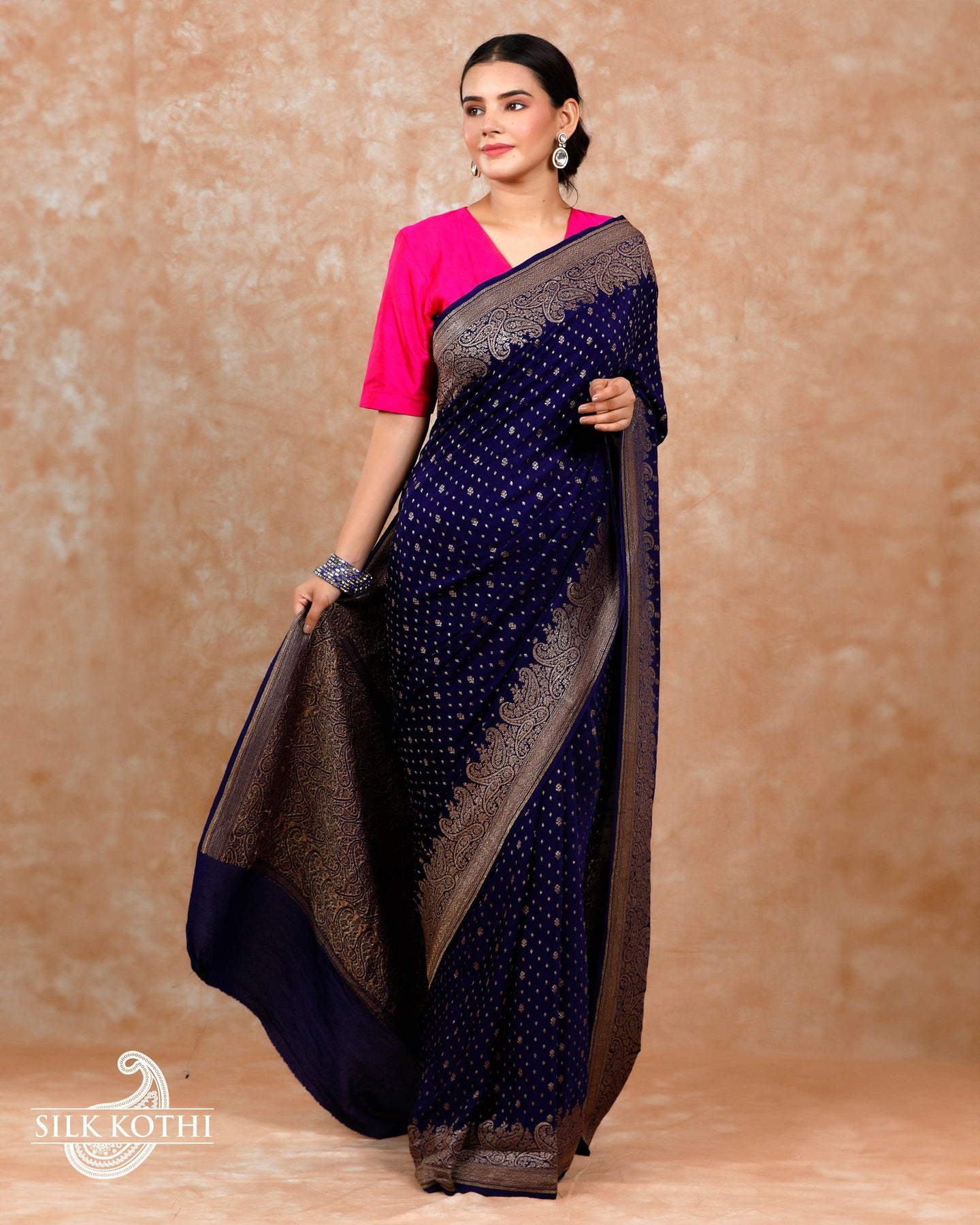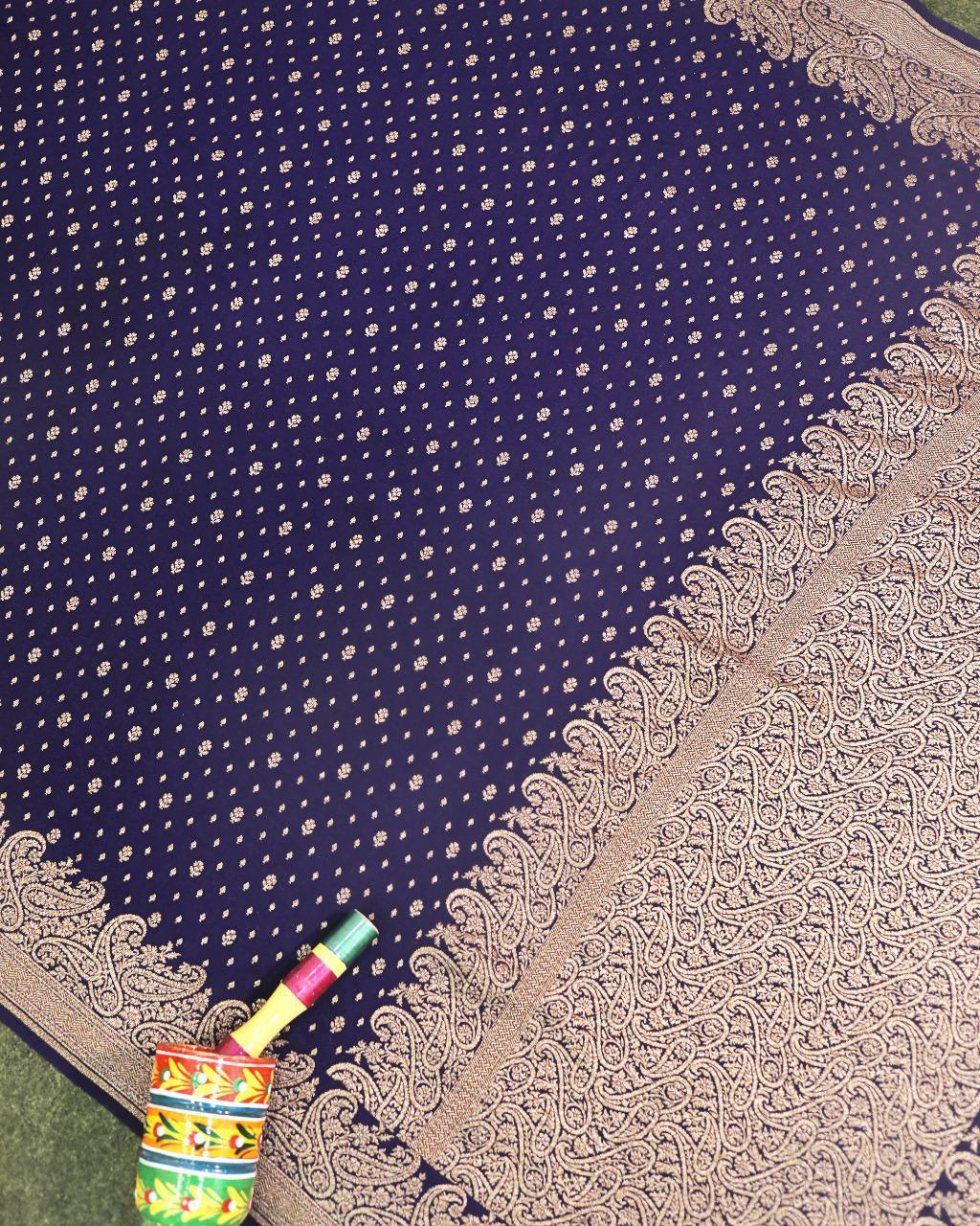 MIDNIGHT BLUE CREPE GEORGETTE BANARASI HANDLOOM SAREE