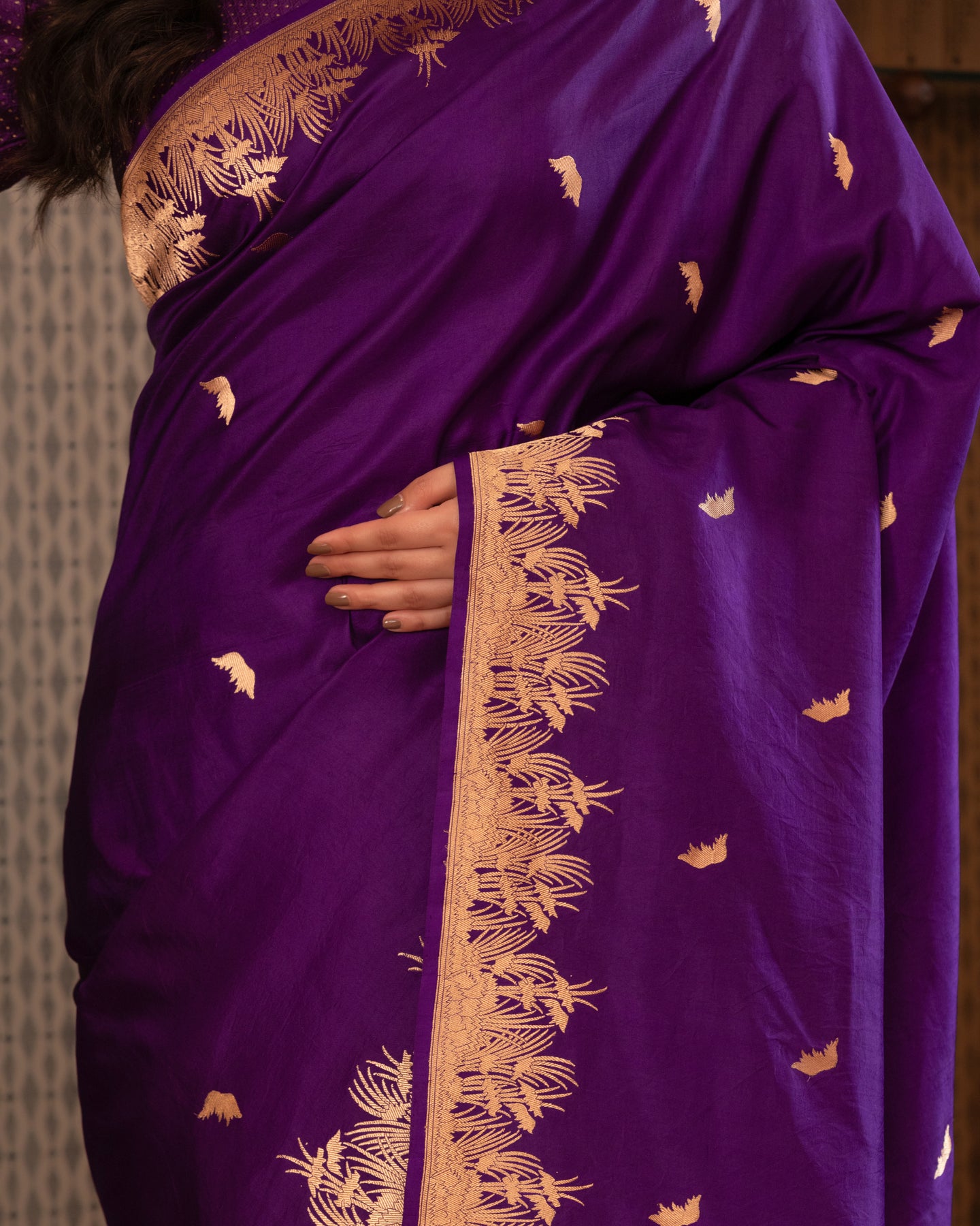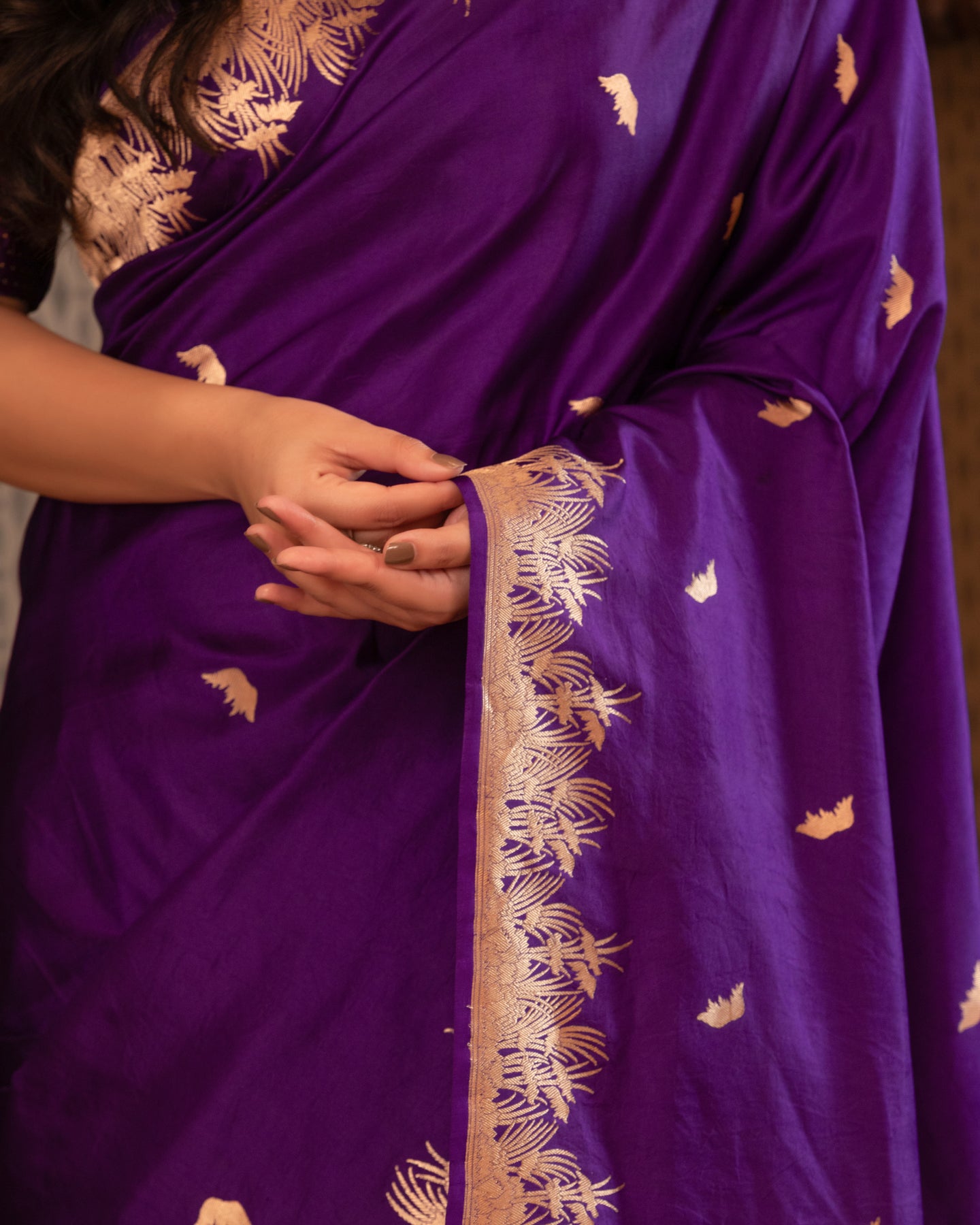PURPLE MASHRU SILK SAREE WITH GOLDEN BUTI BORDER – BANARASI HANDLOOM SAREE