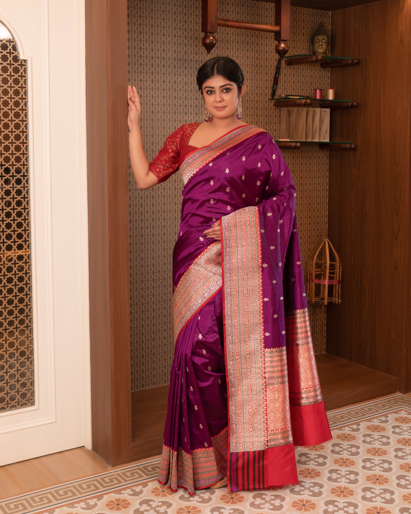 VIOLET KADHWA PUNA SILK BANARASI HANDLOOM SAREE