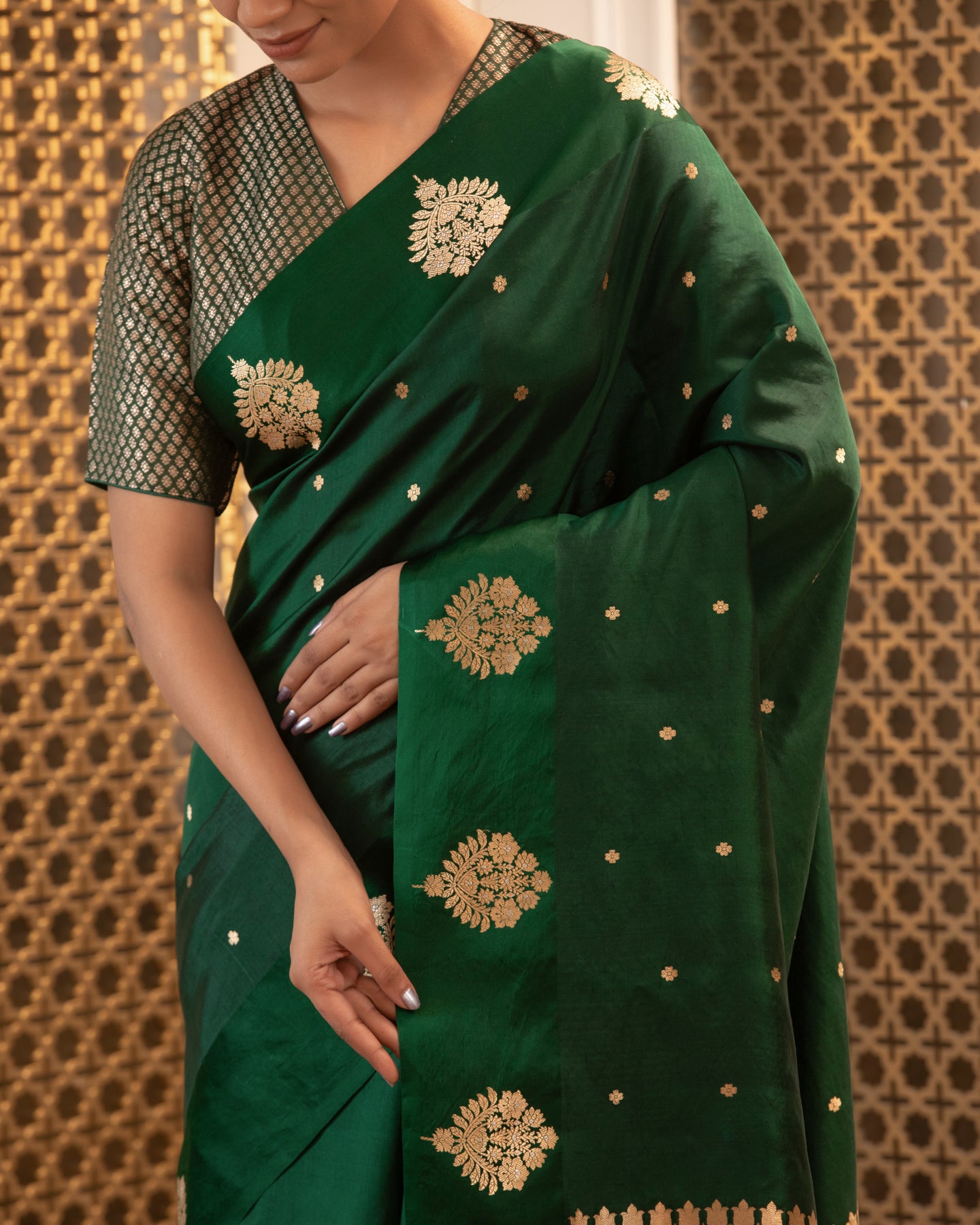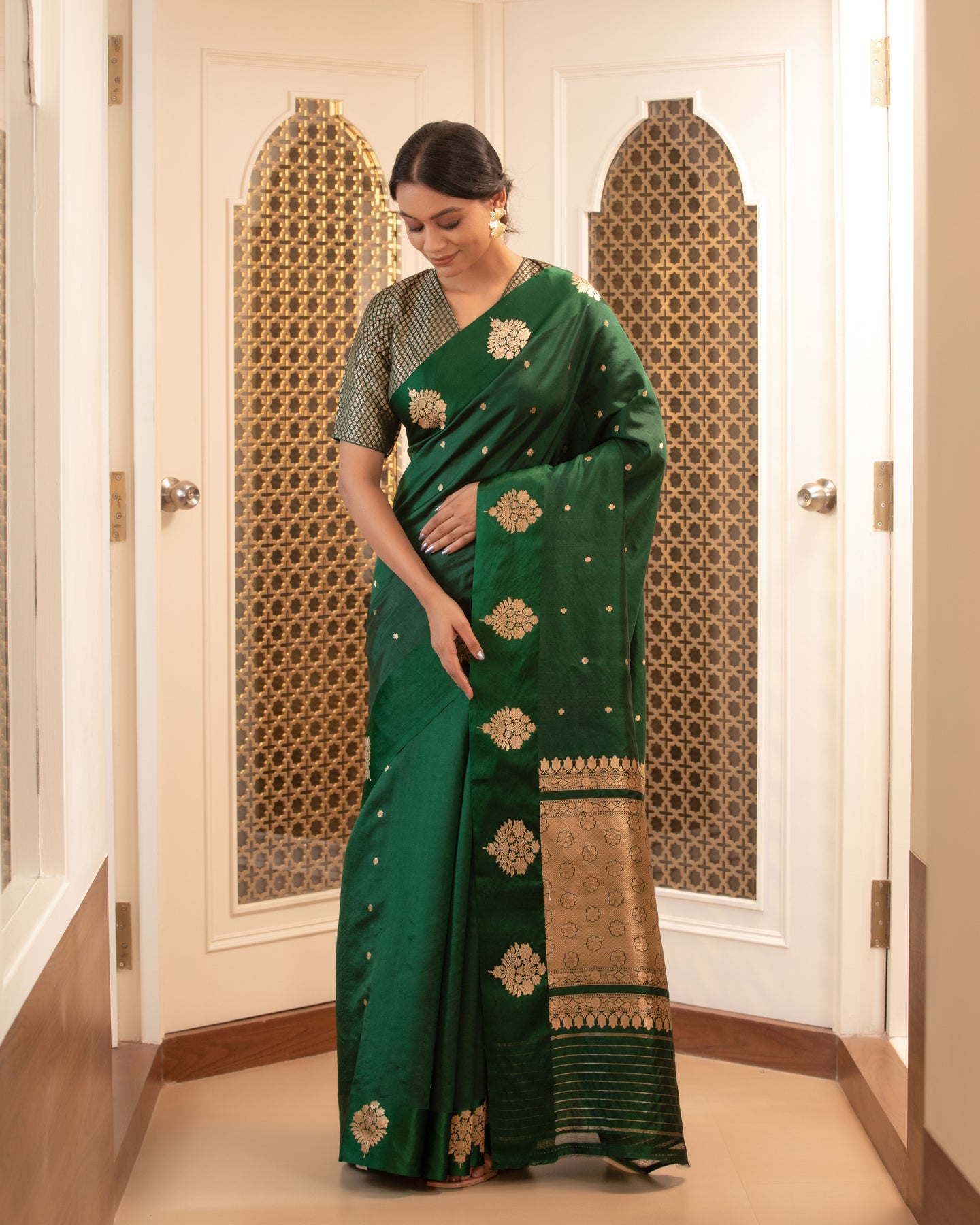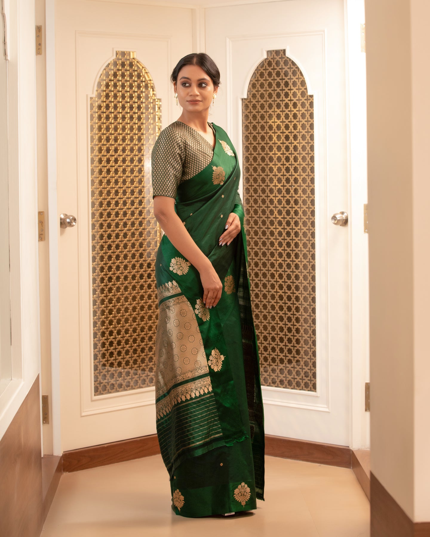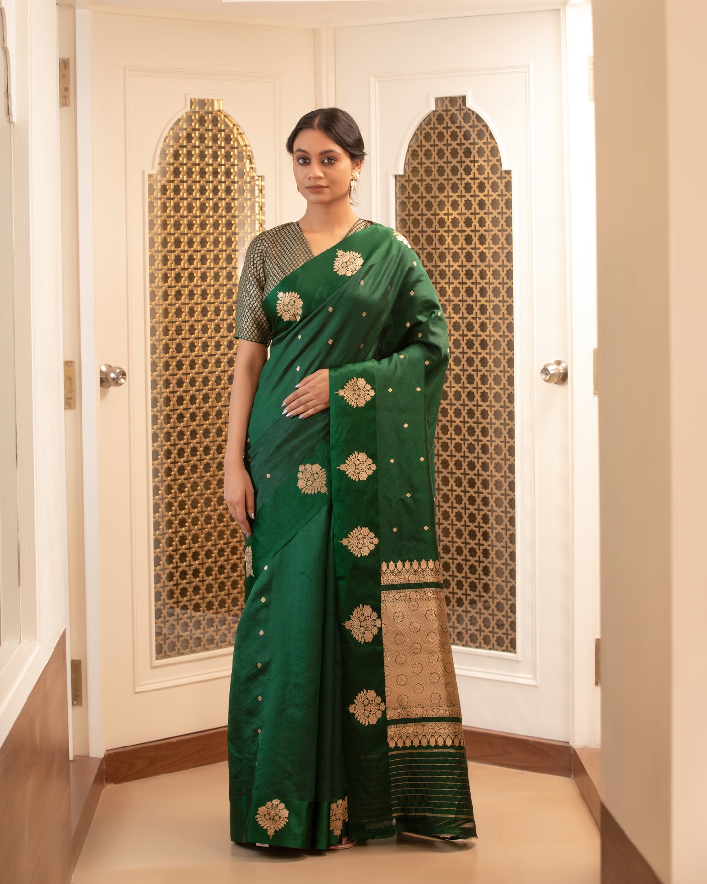PINE GREEN KADHWA KATAN SILK BANARASI HANDLOOM SAREE