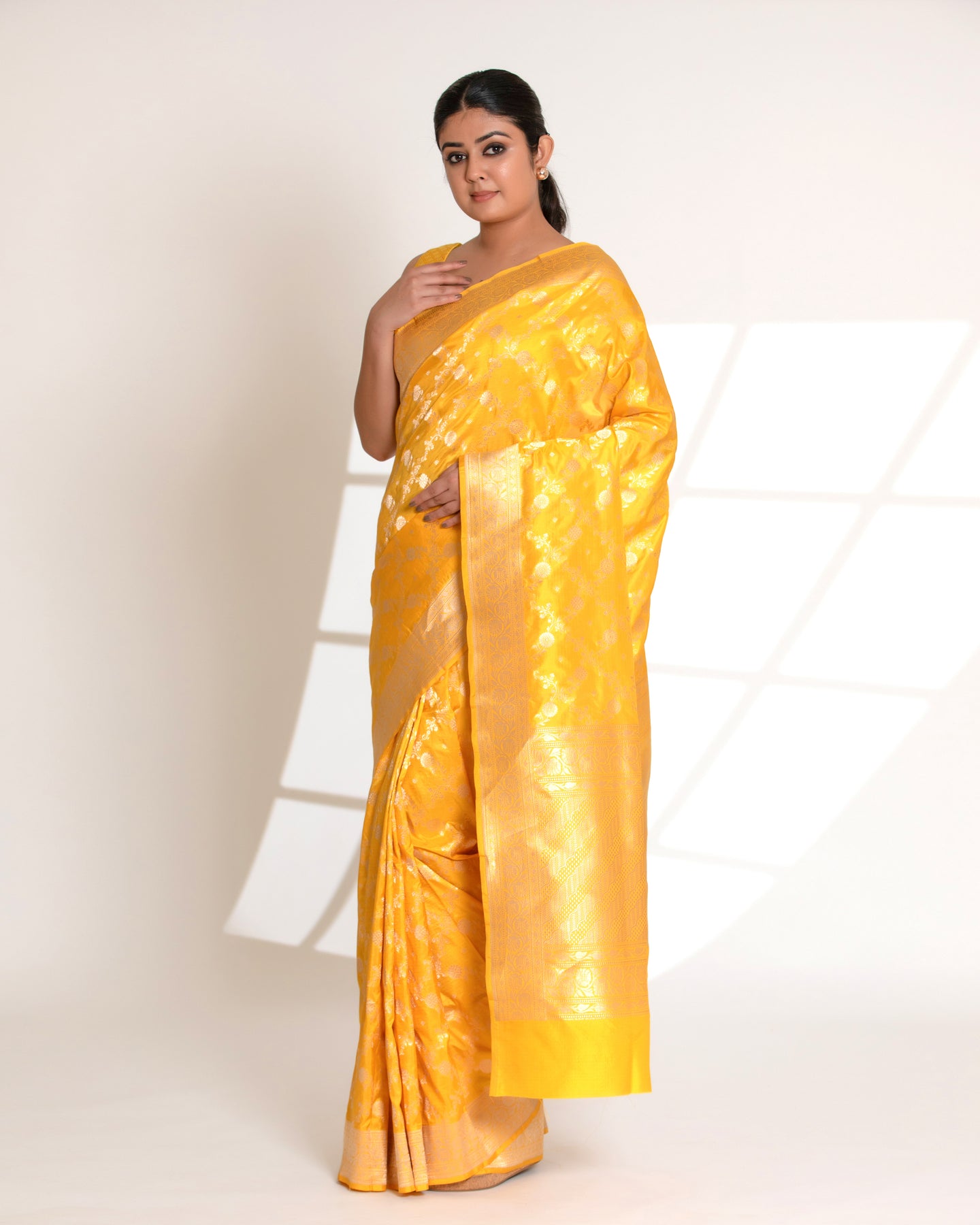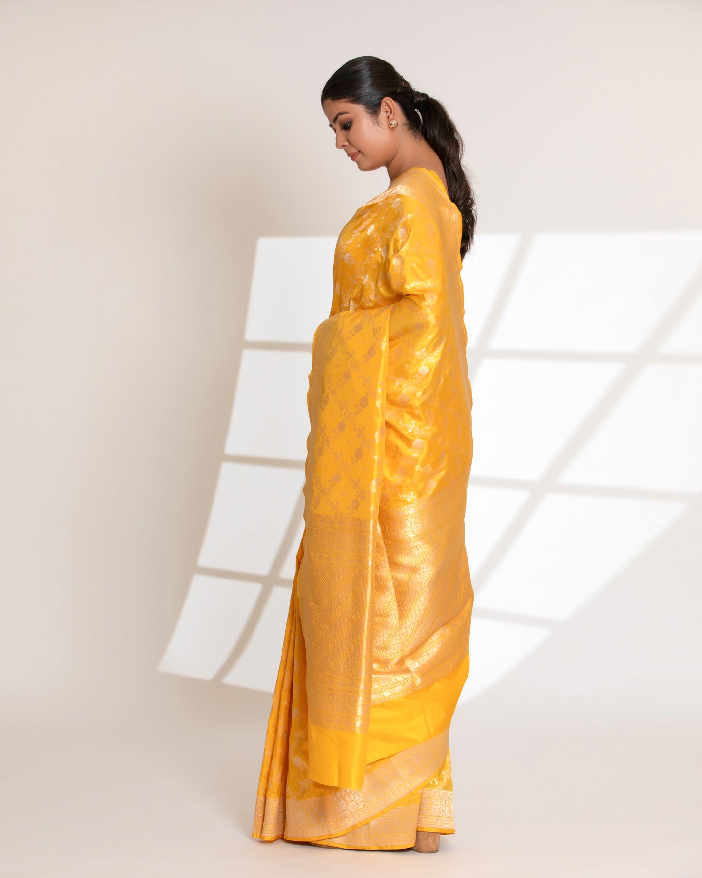 GOLD YELLOW CREPE GEORGETTE BANARASI HANDLOOM SAREE