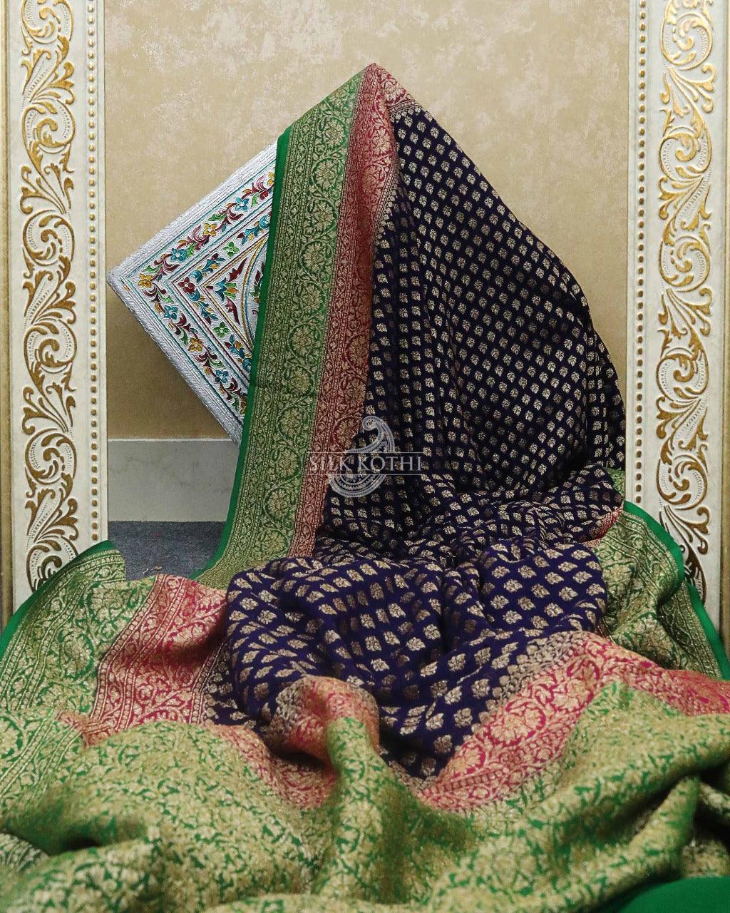 INDIGO PURPLE KHADDI GEORGETTE BANARASI HANDLOOM SAREE