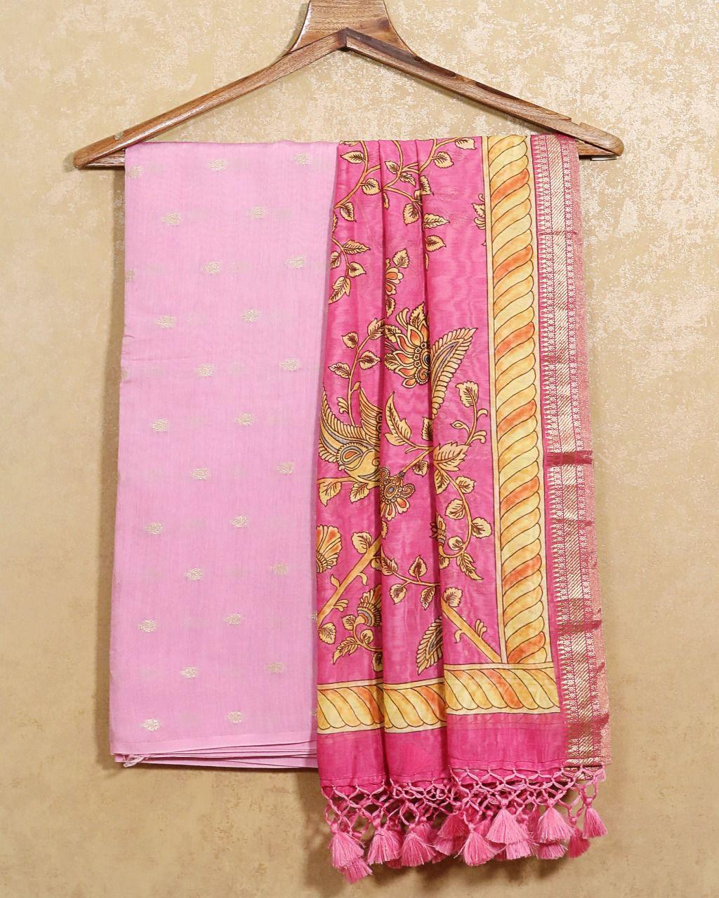 LAVENDER PINK CHANDERI SILK BANARASI HANDLOOM SUIT