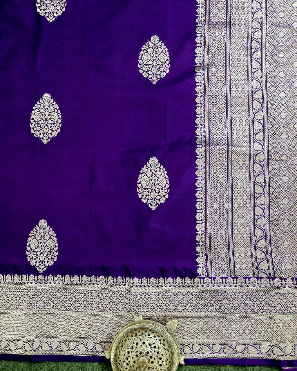 VIOLET KADHWA SATIN KATAN SILK BANARASI HANDLOOM SAREE